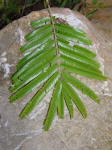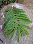 behaart. Fiedern zu 20 bis 30 (bis 42) Paaren. Fiederblattstiel 9 bis 12 cm lang. Fiederblättchen zu 50 bis 60 Paaren,